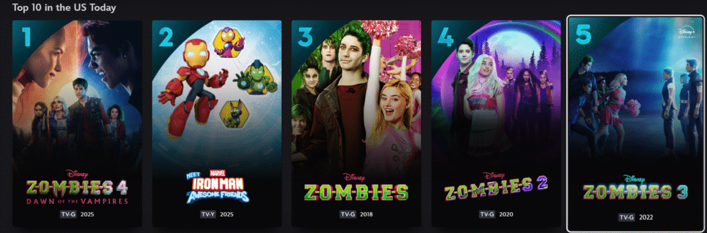 In conclusion, Zombies 4: Dawn of The Vampires being number one in the US on Disney Plus, as well as other regions around the world, proves the reach the franchise has. Although it is primarily directed at kids, all ages can sit down and enjoy it for what it is worth. All in all, Disney has another successful musical franchise in its staple, for a long time to come.